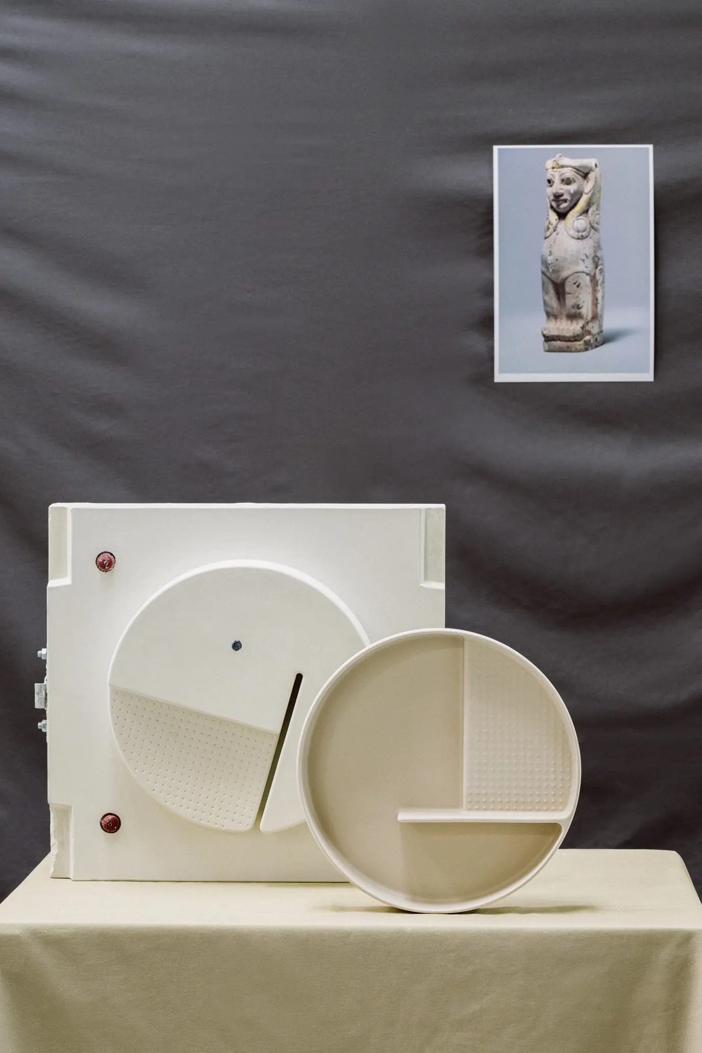Výstava Colour Archaeology se zaměřuje na zkoumání a reinterpretaci starověkých technik barvení keramiky. Sironi propojuje umění, design a archeologii do nadčasových barevných odstínů, které se promítají na současnou keramiku LAUFEN. Tento projekt odhaluje nové výrazové možnosti, v nichž ožívají historické motivy prostřednictvím kombinace koláží z archivních fotografií a současné produkce. Klíčovým prvkem výstavy je paleta dvanácti harmonických tónů, které se aplikují na artefakty z inovativního materiálu Saphirkeramik, vytvářející elegantní spojení minulosti a přítomnosti.